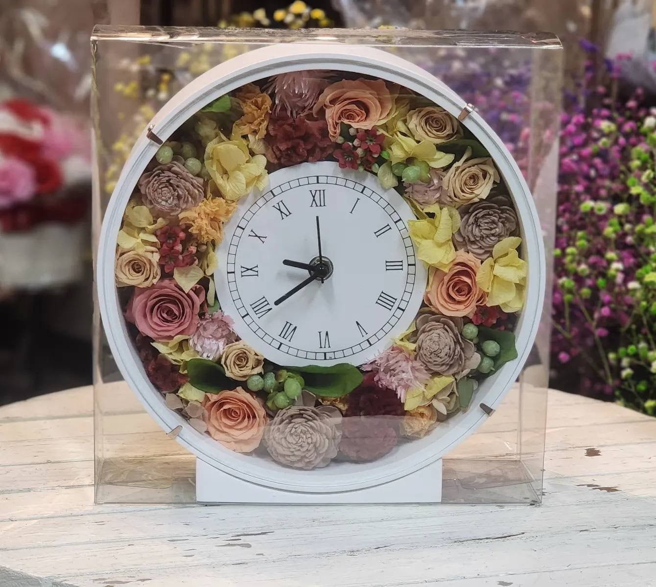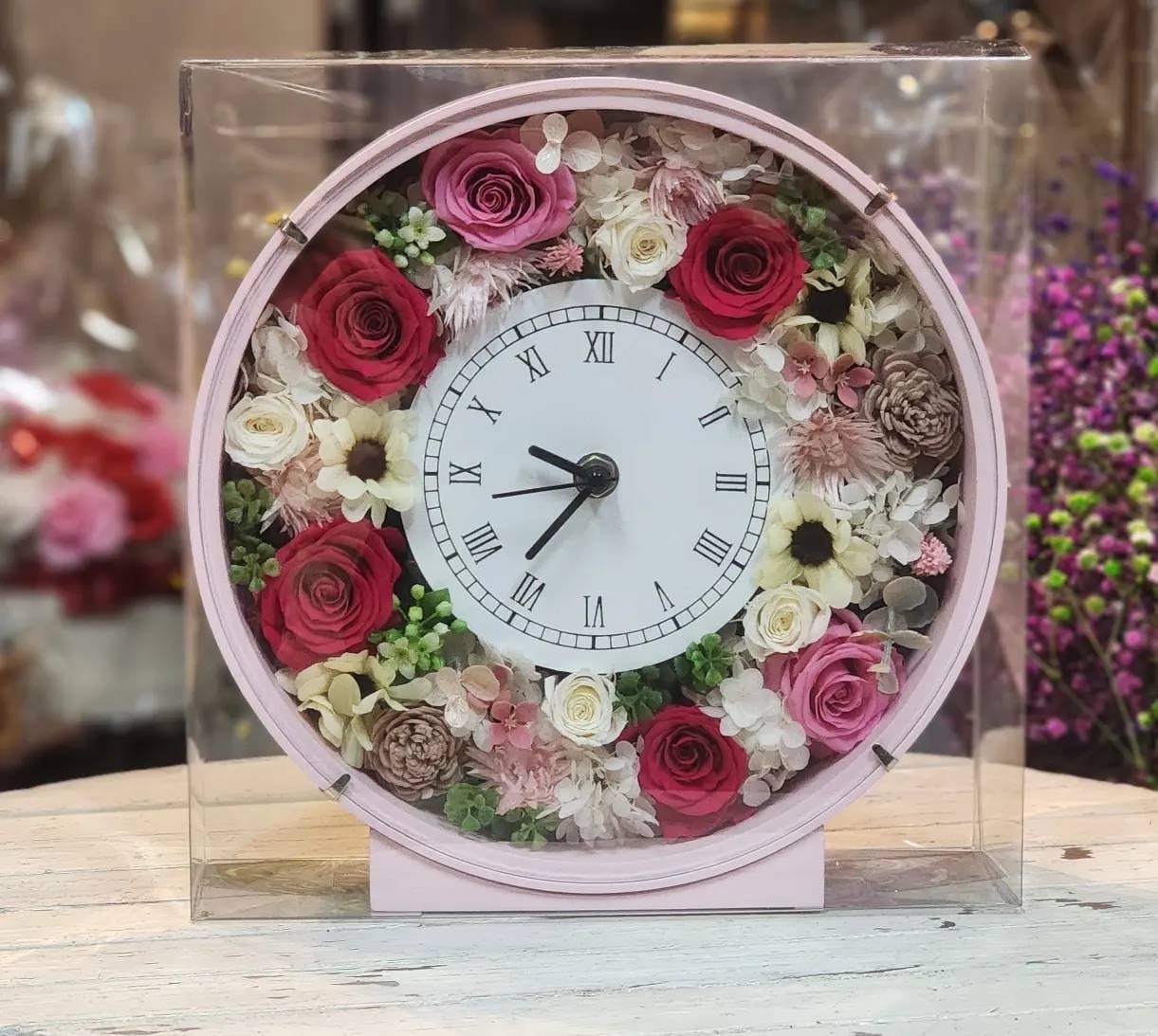 プリザーブドフラワーとアーティシャルフラワーのミックス。 置いても、壁掛けにしても どちらもオッケーです。 ケース入り。 各色1ヶの限定です。 ケースサイズ 幅25㎝×奥行き9㎝×高さ25㎝