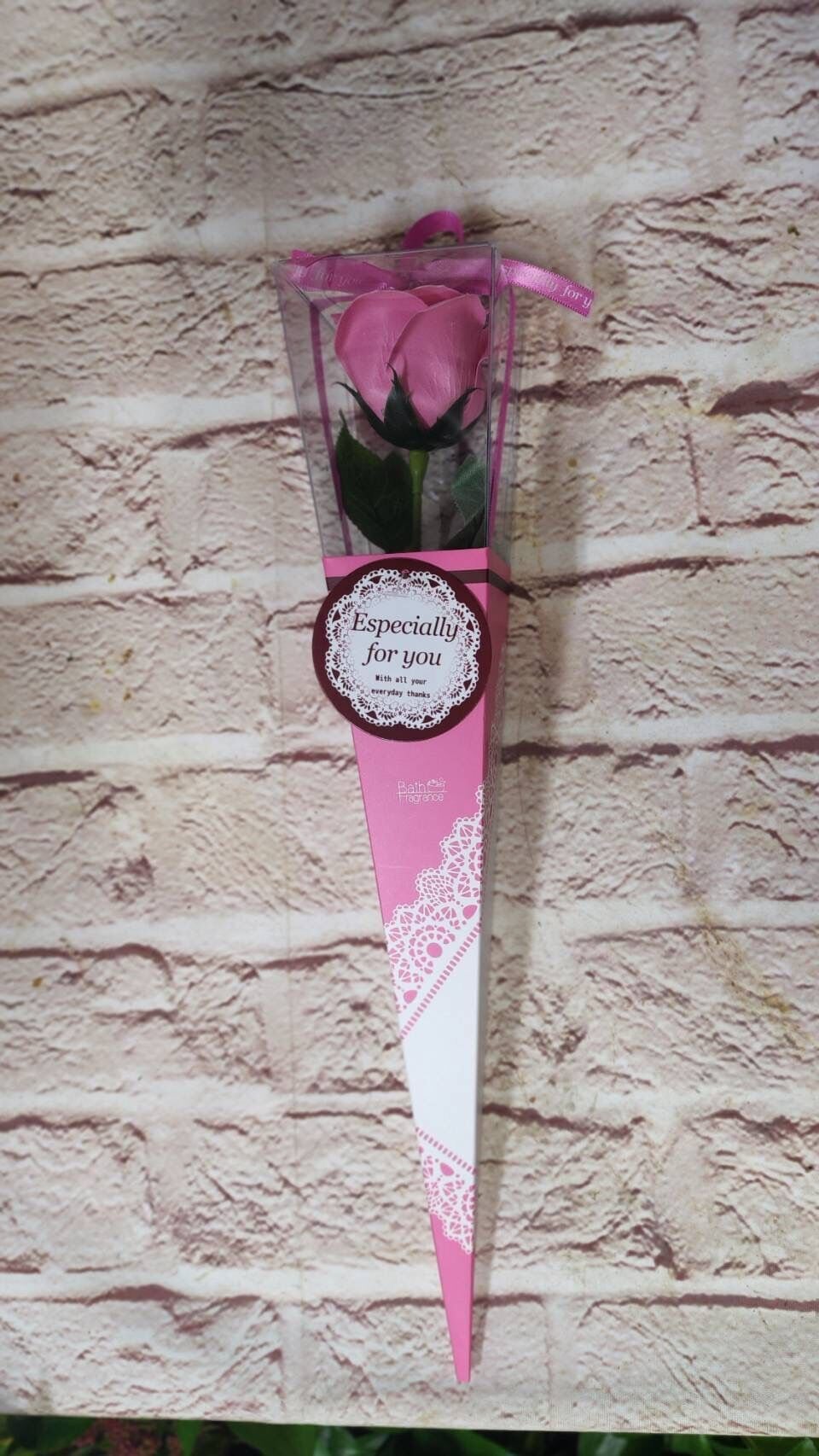 そのまま飾ってもいいですし、入浴剤にもなるソープフラワーです。 ピンクのケース入りです。 ケースサイズ 長さ40㎝×花の頭横7㎝×奥行き7㎝。 カラー 6色、レッド・濃ピンク・薄ピンク・ブルー・イエロー・オレンジ